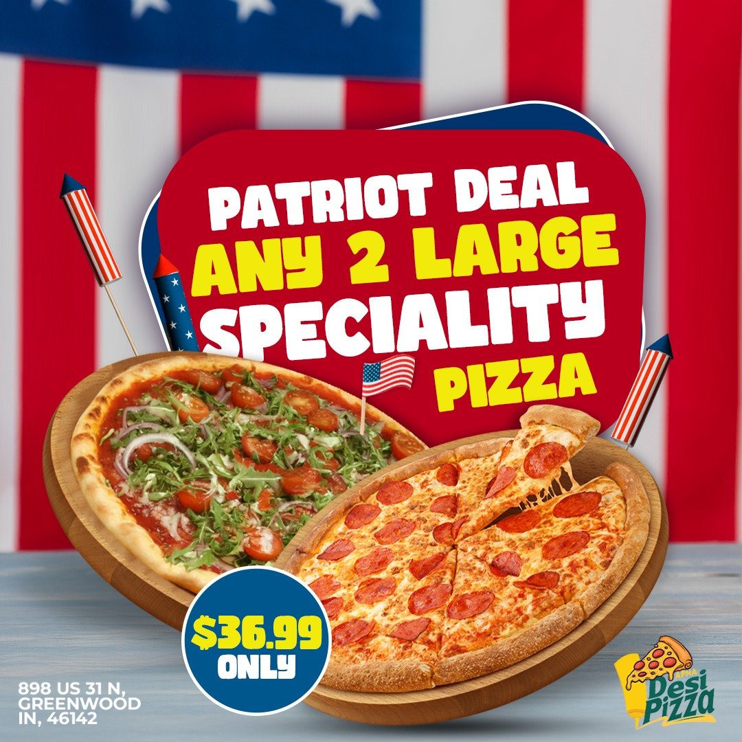Patriot Deal Get ANY TWO Large Specialty Pizzas