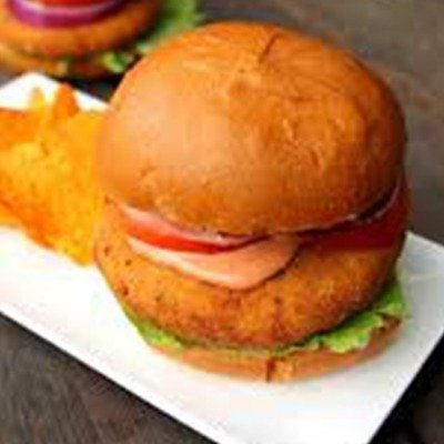 Potato patty burger with veggies, cooked on a tava, served with Punjabi sauces, lettuce, onion, tomatoes, paneer.